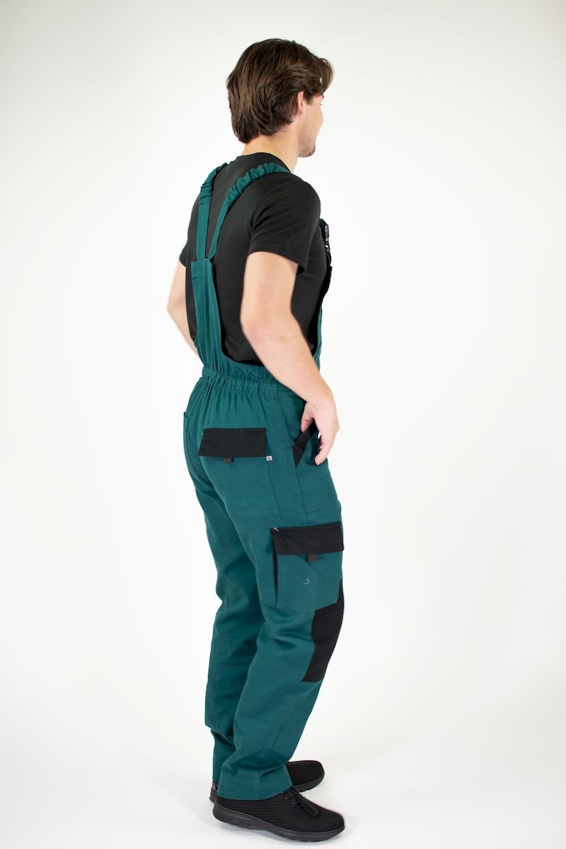 pracovní kalhoty s laclem, zelené